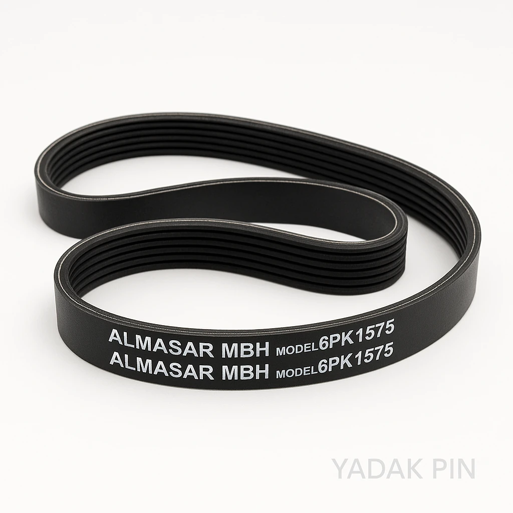 این تسمه ساختهشده از لاستیک مقاوم EPDM با الیاف تقویتشده است که دوام بالایی در دما و فشار بالا دارد. طول آن 1575 میلیمتر (کد فنی 6PK1575) بوده و طراحی دقیق شیارها باعث حرکت روان و کاملاً بیصدا میشود.
